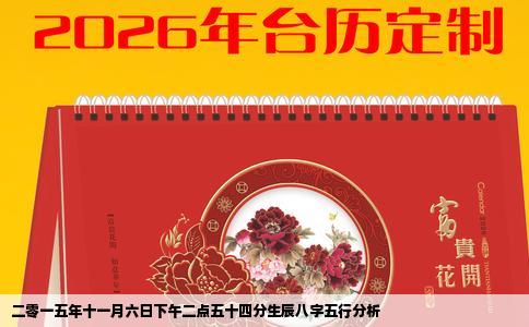 根据您提供的生辰八字信息,二零一五年十一月六日下午二点五十四分的生辰八字为:乙未年、丙戌月、癸亥日、丙寅时。在八字学中,每一个字代表不同的五行元素,要确定五行的缺失部分,需分析每一个字对应的五行元素以及整体五行属性的平衡性。以下为五行属性分析:1. 年柱(乙未):乙为木,未为土。此年柱以木为主,兼有...
