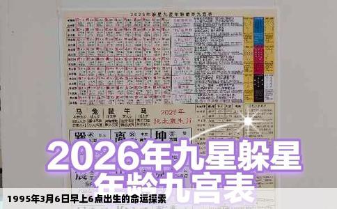 自古以来,中国人对生辰八字颇为重视,相信每个人出生的时刻、日期都会影响其一生的命运。关于1995年3月6日早上600出生的人的命运,我们可以从以下几个方面进行详细探讨。基本命理解析我们需要了解这个人的生辰八字。根据出生时间,我们可以得知其年柱为乙亥(属猪),月柱为庚寅,日柱为壬子(日期需具体时辰才能...